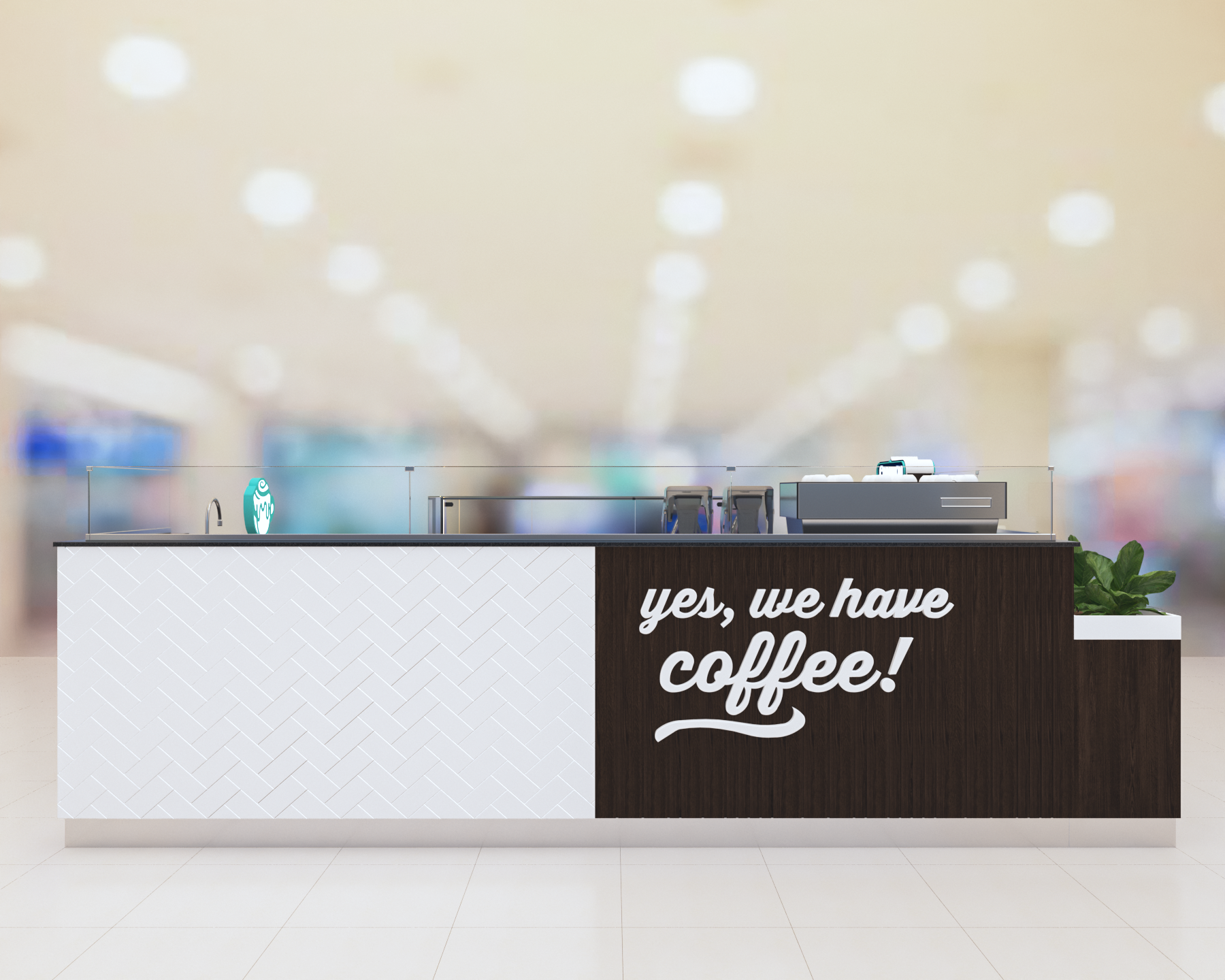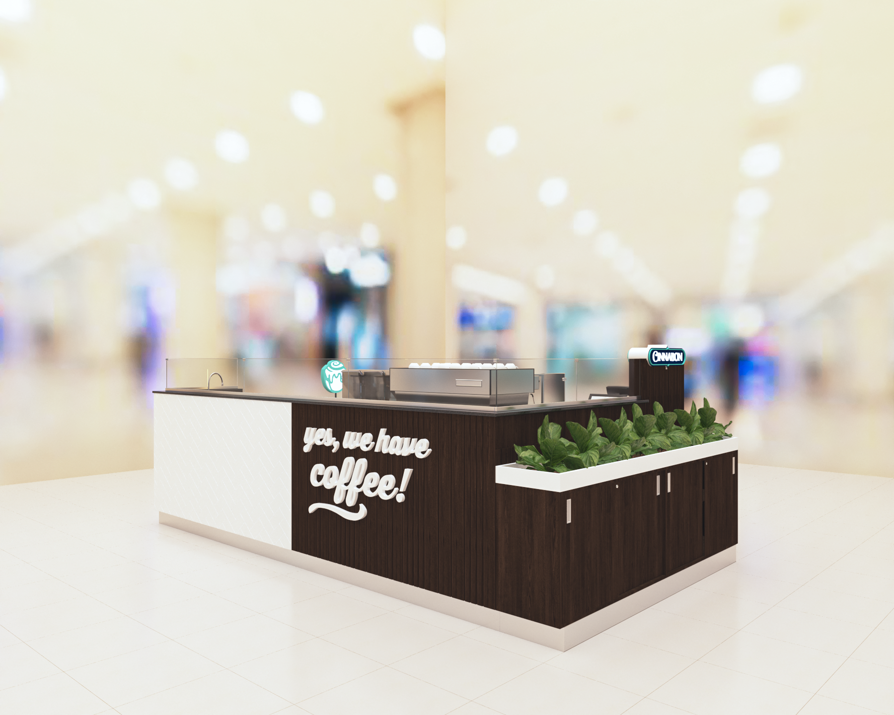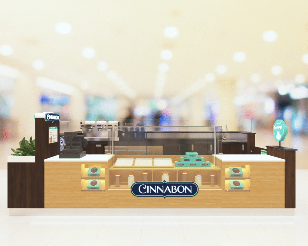 Este módulo fue desarrollado para representar a la marca Cinnabon en un formato ágil y eficiente, manteniendo su estética cálida y reconocible dentro de un espacio abierto y de flujo constante.