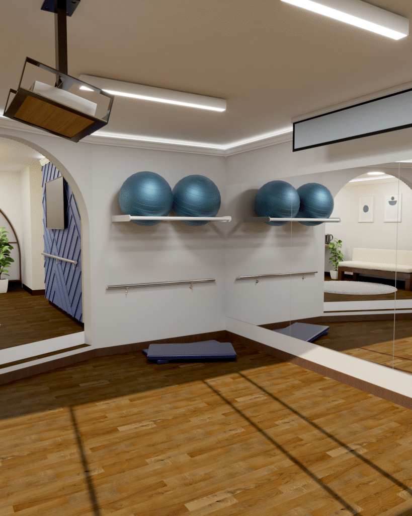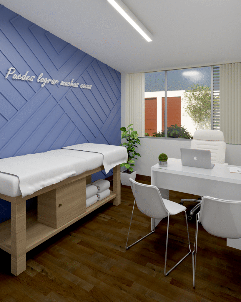 Se emplearon materiales de fácil mantenimiento, una paleta clara y soluciones espaciales que favorecen la circulación, la privacidad y la comodidad durante la atención. El diseño interior busca generar confianza y acompañamiento, clave en los procesos de recuperación física.