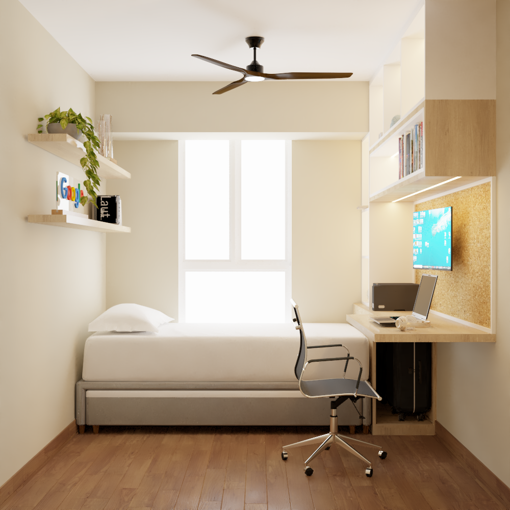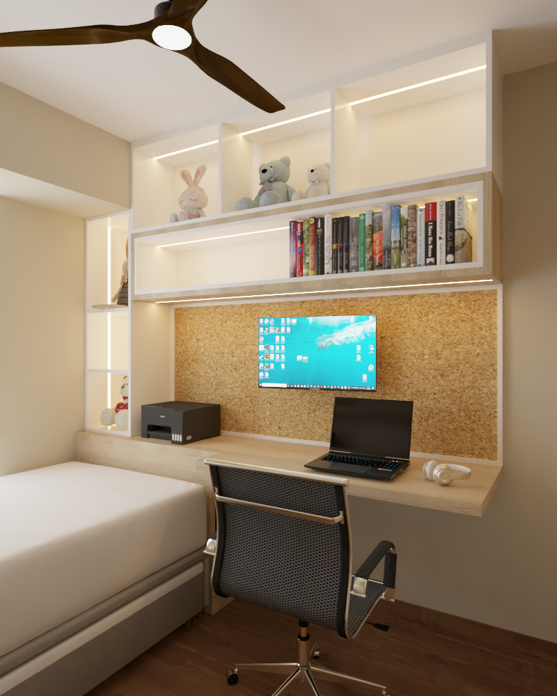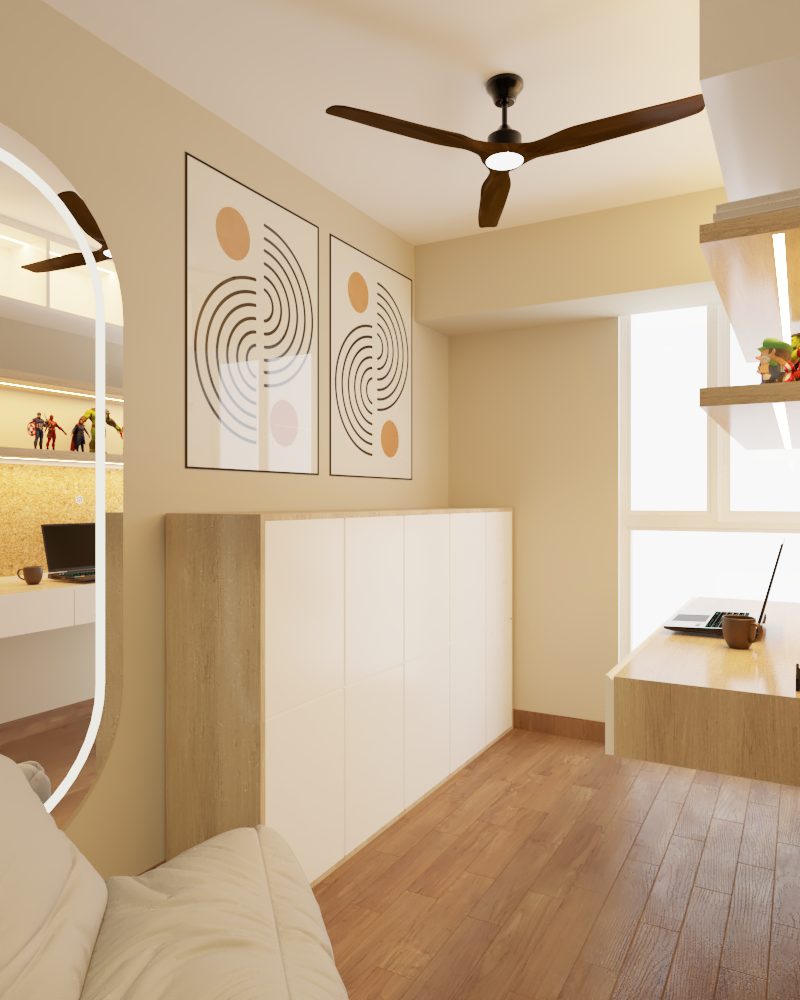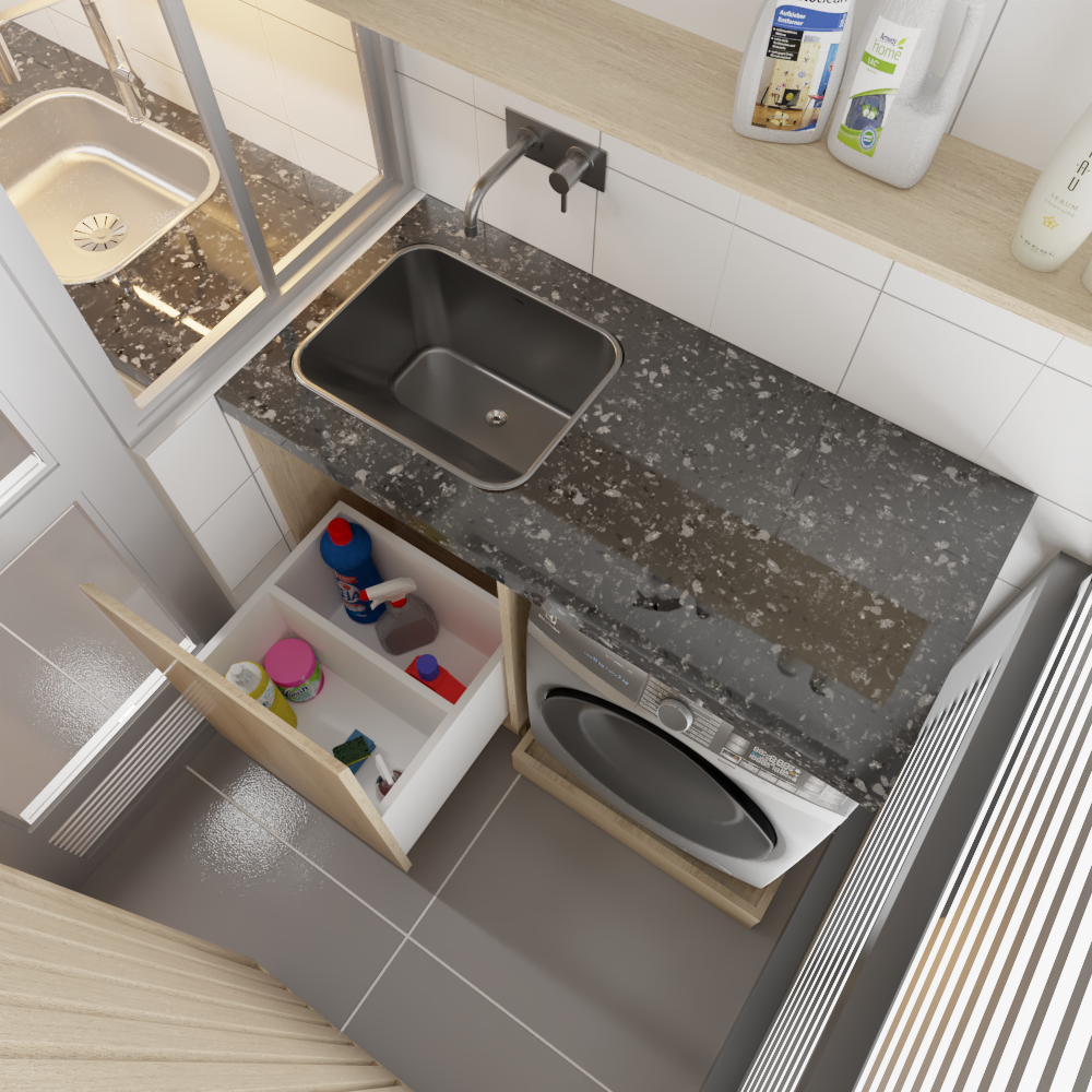Se trabajó con una paleta clara, materiales cálidos y líneas simples que transmiten orden y equilibrio. Cada área fue pensada para responder a un uso cotidiano sin perder elegancia: la sala-comedor se abrió visualmente para ganar amplitud, las oficinas se diseñaron como espacios versátiles, y la cocina se optimizó para el encuentro y la practicidad. El dormitorio principal, por su parte, se transformó en un refugio sereno, mientras que la lavandería ganó en eficiencia y organización.