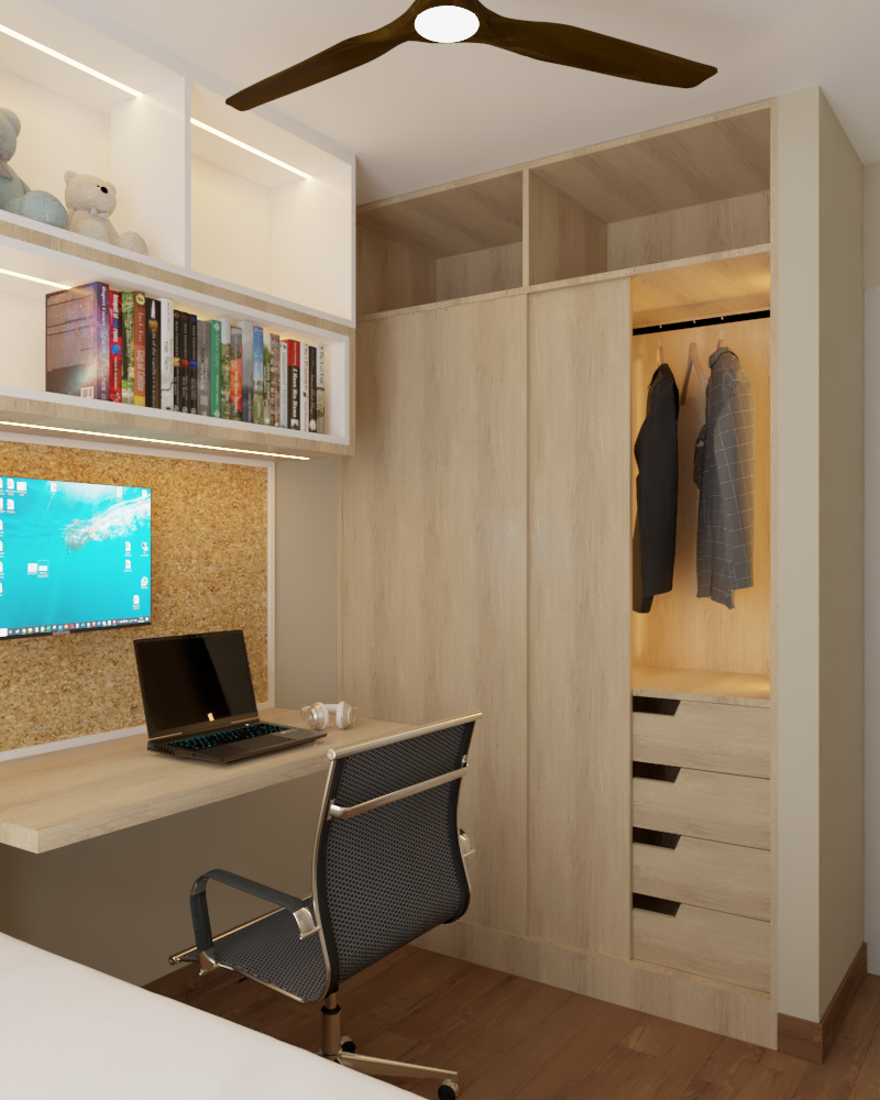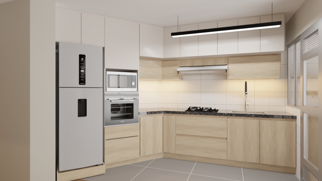 La intervención en esta vivienda tuvo como propósito renovar espacios clave sala-comedor, oficinas, lavandería, dormitorio principal y cocina para adaptarlos a las necesidades de una familia dinámica, buscando mayor funcionalidad, calidez y conexión entre ambientes.